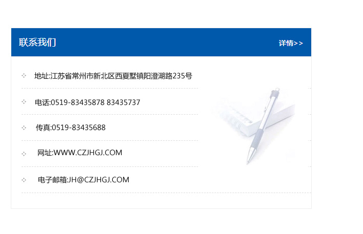 傳真:0519-83435688    郵編:213135    網址:WWW.czjhgj_com.cn-shentong.com    電子郵箱:JH@czjhgj_com.cn-shentong.com